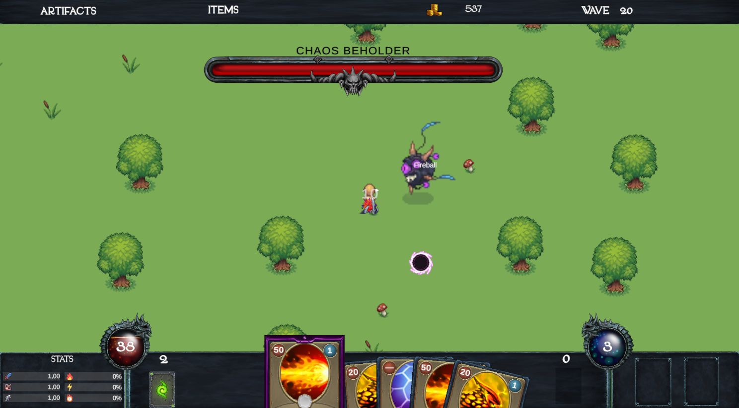 Chaos Draw fuses horde-survivor speed with razor-clean deckbuilding. You make split-second reads on a 3-mana rhythm, sculpt a leaner deck mid-run, and hunt for the one synergy that flips the fight. Enemies drop Chaos Cards-short-lived, high-impact power spikes that let you bend battles when it matters most. Between runs, a Skill Tree unlocks upgrades and twists that reshape how you play. And when the screen goes still, a boss is usually the reason.
